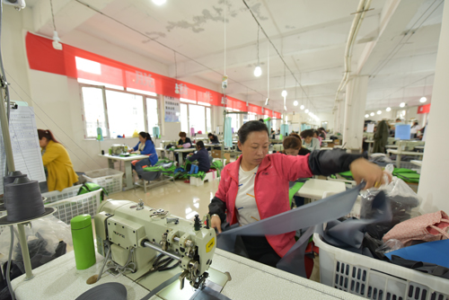 下茹越鄉(xiāng)的貧困戶蘇金娥是這家工廠的員工,“以前沒(méi)有工作,家里頭也挺困難,這會(huì)兒政府開(kāi)設(shè)這個(gè)項(xiàng)目,我就過(guò)來(lái)試試,結(jié)果也挺好...這里有師傅教,每天可以學(xué)習(xí)...這幾天也熟練啦,每天可以做100多件,今年肯定能脫貧?!辈簧蒲赞o的蘇金娥在提到這份工作時(shí)滿臉笑容,斷斷續(xù)續(xù)的敘述中可以感受到她那喜悅的心情。