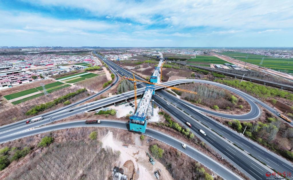 五臺山機場特大橋的建設現場,同樣是一派熱火朝天的景象,科技的力量在陽光下熠熠生輝。