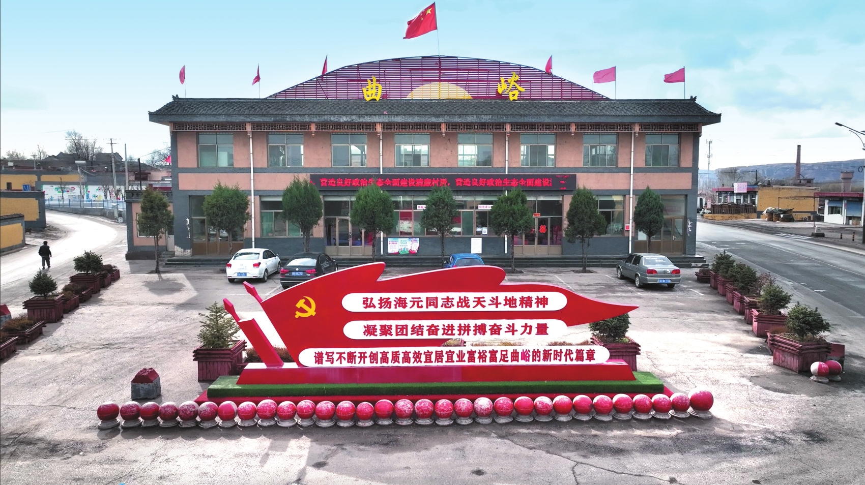 微風(fēng)拂過層層梯田,從歷史走來的紀念館與新時代的村黨支部辦公樓隔空相對,中間廣場上飄揚的紅旗獵獵作響。這面旗幟見證了一場跨越時空的接力,也傳頌著永不褪色的傳奇——信念如何種進黃土,長出希望。