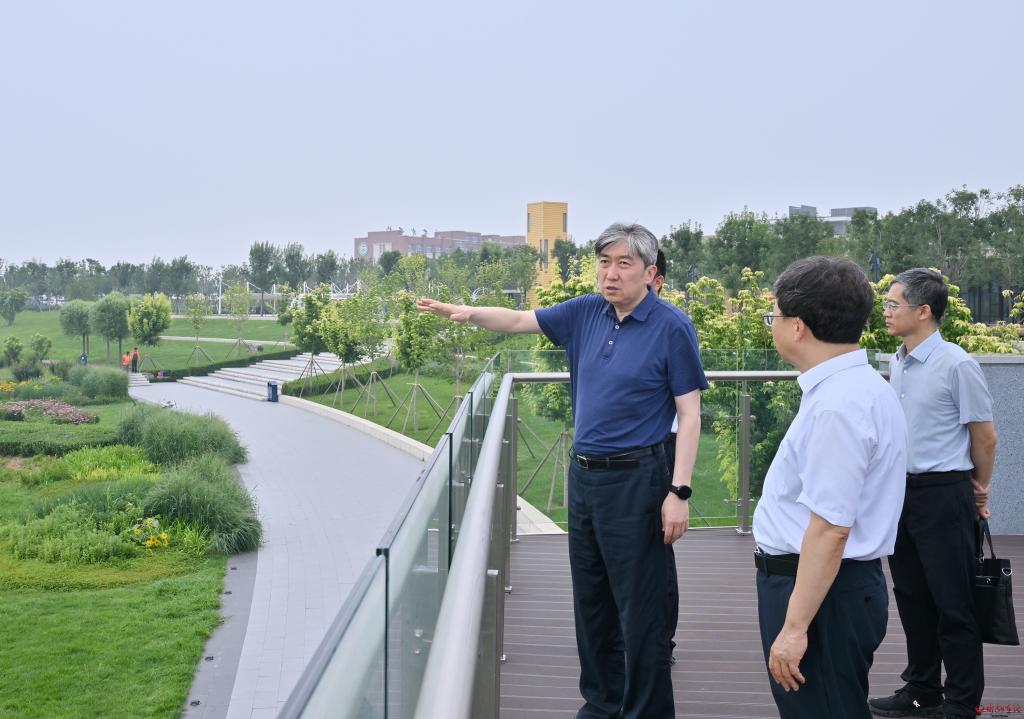 仲夏時節(jié)的牧馬河生態(tài)公園鮮花盛開、綠意盎然,游人三五成群漫步于蜿蜒小徑,或駐足觀賞,或拍照留念。朱曉東認(rèn)真察看公園的設(shè)施管理養(yǎng)護(hù)情況及周邊環(huán)境狀況,聽取牧馬河生態(tài)公園二期項目籌建情況匯報,對進(jìn)一步加強(qiáng)公園管理提出了指導(dǎo)意見。
