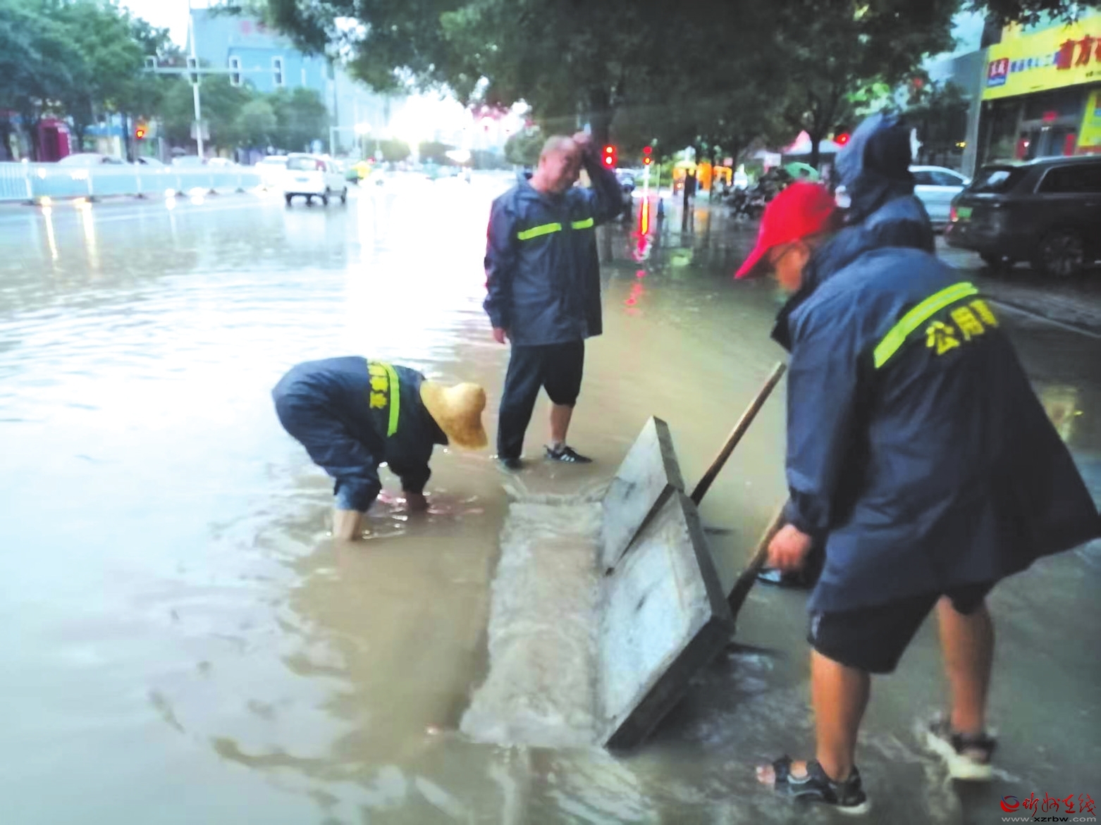 凌晨5時雨勢漸小,經(jīng)過深夜到黎明近4個小時的持續(xù)奮戰(zhàn),200多名干部職工徒手清理了100多個被堵塞的排水井口。隨著主要堵點(diǎn)疏通,路面水流迅速退去。凌晨6時,城區(qū)積水區(qū)域交通逐步恢復(fù)正常,保障了早高峰通行。