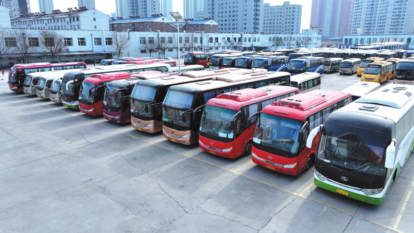 忻州汽車(chē)客運(yùn)中心的大巴車(chē)整裝待發(fā)
