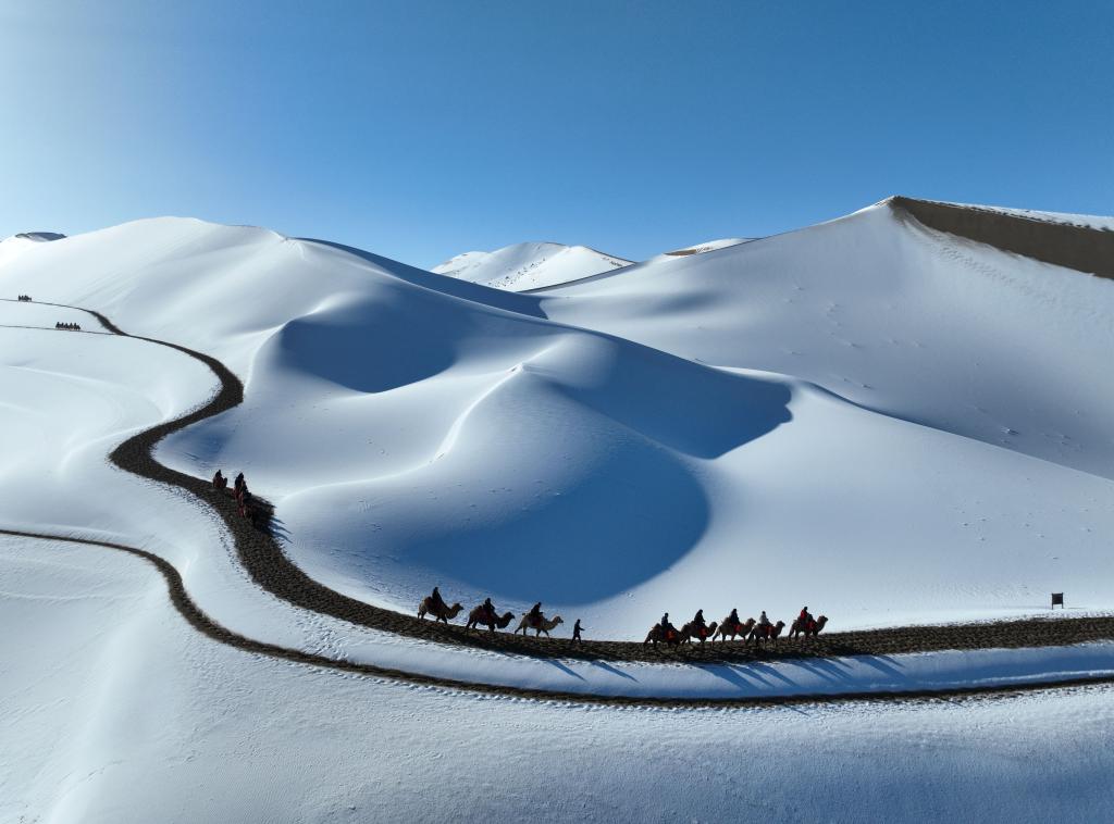 2023年11月15日,游客在甘肅省敦煌市鳴沙山月牙泉景區(qū)欣賞雪景。(無人機照片) 張曉亮 攝 統(tǒng)籌:吳煒玲 編導(dǎo):董琳娜 記者:馬莎 新華社音視頻部制作 (責(zé)任編輯:蔡文斌) |