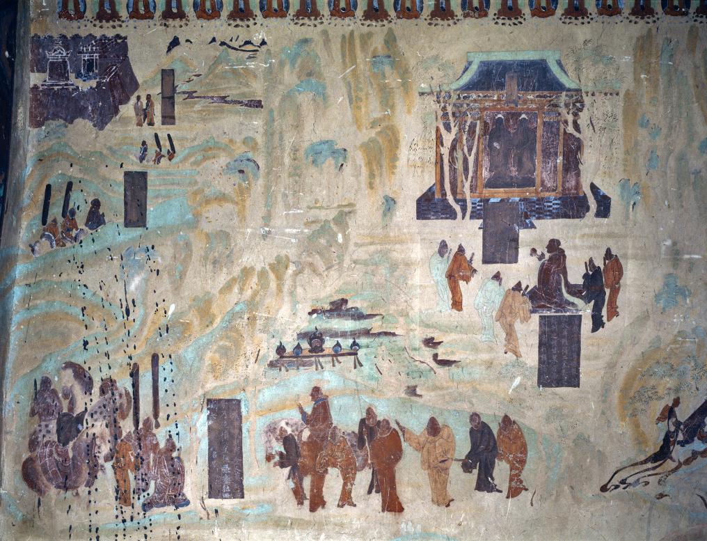 莫高窟第323窟張騫出使西域圖。新華社發(fā)(敦煌研究院供圖) “來一次就會愛上。” 莫高窟的崖壁上,佛陀的微笑已經(jīng)持續(xù)了千年。那些飛天的裙裾,不是絲綢,是凝固的云彩。畫工們的呼吸早已消散,但他們的心跳仍在壁畫中回響。每一筆朱砂,都是對永恒的虔誠叩問。