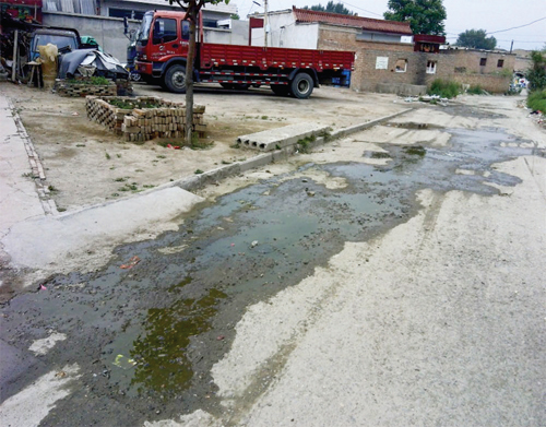 城區(qū)橋東街天宇涂料廠門口,污水橫流10 多天了,南街村有人將此修好,不到一個月,污水又開始流出了,路面變成了綠色,氣味難聞。望相關部門督查治理。(一網友6月21日攝)