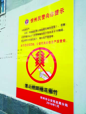 近日,細(xì)心的市民一定會注意到,各居民小區(qū)都張貼了春節(jié)期間禁止燃放煙花爆竹的民警提示。作為城市的一員,廣大市民一定要遵守《忻州城區(qū)禁止燃放煙花爆竹規(guī)定》,令行禁止,以實際行動保衛(wèi)城區(qū)來之不易的良好大氣環(huán)境,過一個文明的春節(jié)。(魯明強 攝)