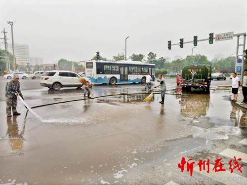 據(jù)了解,為了確保城區(qū)道路干凈整潔,市環(huán)衛(wèi)處組織工人,利用早晚車少人少時(shí)段,對(duì)城區(qū)街道進(jìn)行定期清洗。也希望他們的行為,進(jìn)一步喚起公眾對(duì)城市的熱愛,從而推動(dòng)城市文明建設(shè)不斷向前發(fā)展,共同創(chuàng)造清潔、文明、和諧的市容環(huán)境。圖為環(huán)衛(wèi)工人正在清洗街道 張志遠(yuǎn)攝