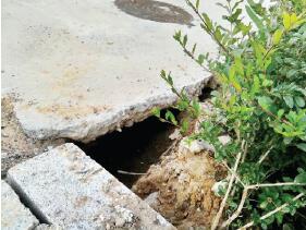 城區(qū)慕山南路樊野村西北人行道(路燈050號桿右側(cè)),因下雨出現(xiàn)了路基進水,雨水沖出一個大洞,影響道路安全,希望相關(guān)部門及時處理,避免隱患擴大。一網(wǎng)友攝