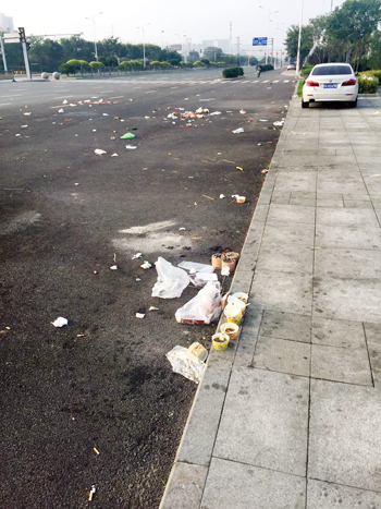 城區(qū)高鐵廣場(chǎng)前,慕山路與雁門大道丁字路口,每天晚上有小商販在此經(jīng)營(yíng),本無可厚非,但每天產(chǎn)生的垃圾,既影響市容環(huán)境,還給環(huán)衛(wèi)工人增加了工作量,呼吁市民及小商販愛護(hù)環(huán)境,也希望相關(guān)部門管理維護(hù)公共環(huán)境。一網(wǎng)友攝于8月22日