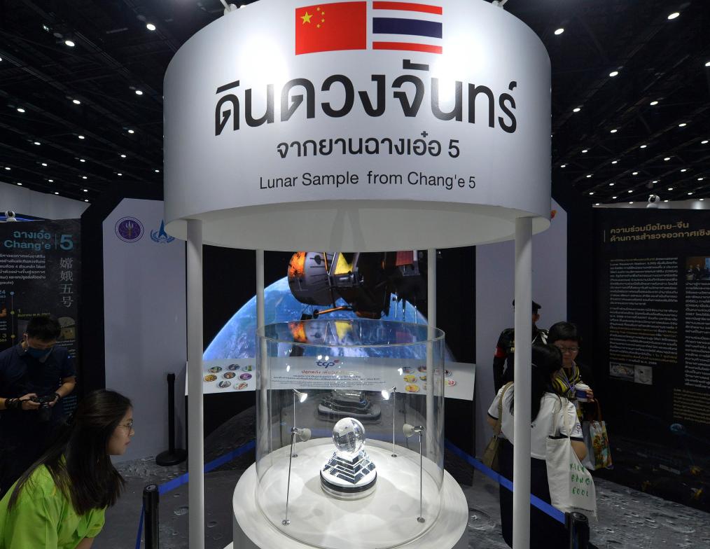 這是2024年7月23日在泰國曼谷舉行的“2024泰國未來科學(xué)力量展覽會”上拍攝的嫦娥五號月壤樣品展臺。新華社發(fā)(拉亨 攝)