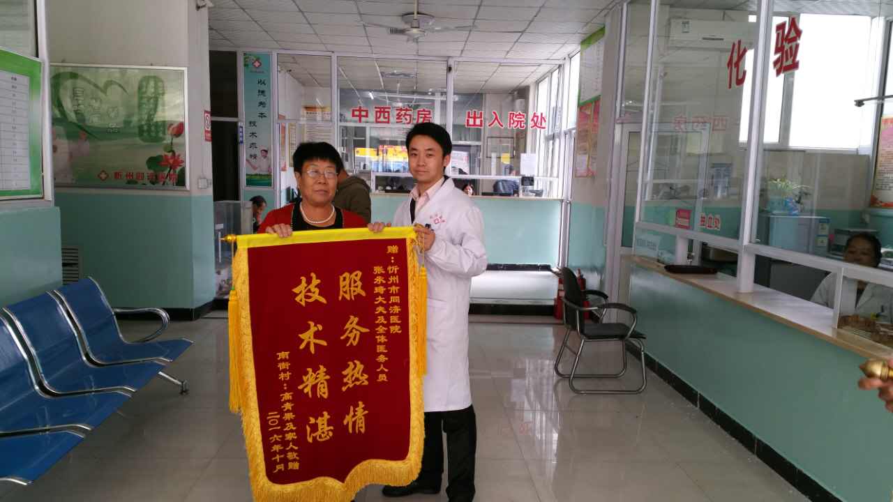 “謝謝您!張大夫,我現(xiàn)在精神好多了,睡眠也好了,吃飯也有胃口了……真是不知道怎樣感謝您才好?!?0月8日,位于忻州市光明西街的同濟醫(yī)院辦公室,高老先生夫婦握著張大夫的手激動地說。其妻子郝女士將早已準備好的一面“服務熱情,醫(yī)術(shù)精湛”的錦旗送到張成喜大夫手中。同樣來自代縣胡峪鄉(xiāng)的賈先生也將一面寫有“醫(yī)德高尚,醫(yī)術(shù)精湛”的錦旗送到了該院寧院長手中。