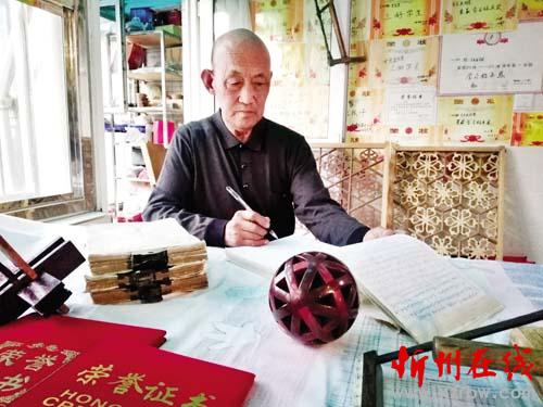 李德賢,出生于1942年,現(xiàn)年76歲,定襄縣季莊村人。李德賢的父親是當(dāng)?shù)啬咀鞯?9代掌門人,按照當(dāng)時的行規(guī),每一屆掌門人選下一任掌門人時要嚴(yán)格遵循“傳長不傳子”的古訓(xùn),也就是說在任的掌門人必須是品德高尚、技藝超群的德藝雙馨之人,選任下一代接班人時不能懷有私心,不能把自己的兒女作為接班人,接班人必須是熱愛木作、誠信聰明、記性好、有悟性、有開拓能力、對木作有建樹、嚴(yán)守一日為師終生為父至善品行的人。同時,按照行規(guī),選接班人要進(jìn)行嚴(yán)格的考試,師傅看中有悟性的弟子時,會交給他一個平時秘不示人的“六技八體”讓弟子做?!傲及梭w”是小木作,但它是體現(xiàn)大木作組合的經(jīng)典和規(guī)范大全。等弟子過年拜師時要交給師傅一個做好的“六技八體”給師傅看,然后接下來的五年中,弟子要根據(jù)師傅給的“六技八體”自己去悟,另外設(shè)計如何結(jié)構(gòu)、怎么組合、怎樣開啟的方法,逐年加一個,5年共15個絕不重復(fù),每年拜年時交師傅。師傅根據(jù)這15個變體“六技八體”的工藝水平和弟子的德行,經(jīng)考察,合格者定為掌門,最后將手藝絕活傳給他。人名由師傅刻于始祖像背部,流芳千古。在跪拜始祖、師傅和立誓言后,師傅把資料及始祖像傳給接班人供奉,代代相傳已有1800余年。李師傅說自己前面的49任掌門人的姓沒有一個相同的,就是源于“傳長不傳子”的古訓(xùn)。掌門恩師各有刻畫資料,別出心裁,令人稱奇。正是這種有別于一般“父傳子”的開放式傳承制度,保證了古老的技藝能夠得以傳承和發(fā)揚。