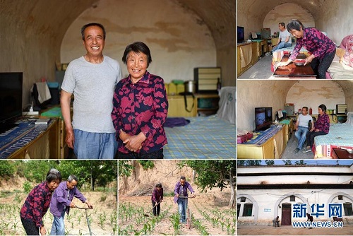 趙樹江和妻子魏煥英,都是1949年出生,家在山西省長治市武鄉(xiāng)縣南垴村。老兩口種了5畝玉米、1畝小米,還有核桃樹。2016年,趙樹江和魏煥英家的窯洞出現(xiàn)裂縫,他們申請進行了危房改造,經過修理后,家里的房子煥然一新。 左上:趙樹江(左)和妻子魏煥英在家中合影;右上:魏煥英在打掃衛(wèi)生;右中:趙樹江(左)和妻子魏煥英在家里看電視;下右:魏煥英在院子里掃地;下左、下中:趙樹江(右)和妻子魏煥英在地里忙碌(拼版照片,6月12日攝)。 地處晉東南的山西省長治市,位于由太行山、太岳山環(huán)繞而成的上黨盆地中。在群山中、崖壁上,許多村莊自然條件惡劣,基礎設施落后,脫貧致富是大山深處人們的迫切心愿。 近年來,一場場脫貧攻堅戰(zhàn),在一個個深山村打響。政府全力探索脫貧路徑的同時,山區(qū)百姓因地制宜,靠自己的雙手和智慧走上致富路,交出了一份扎實的脫貧答卷。 記者在太行山、太岳山一路尋訪,記錄下多位70歲老人的生活。這些共和國的同齡人,親歷了山鄉(xiāng)的巨變,見證著長治山區(qū)脫貧攻堅偉大工程的一步步推進。 新華社記者 詹彥 攝