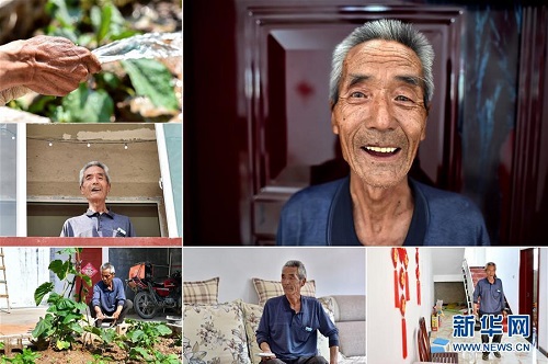 劉中秀,男,1949年出生,山西省長治市潞城區(qū)西北村人,全家5口人靠種植玉米為生,收入微薄。2011年,劉中秀因一次意外而致殘,生活更加貧困。被列入建檔立卡貧困戶后,劉中秀在村干部的幫助下開起了農(nóng)家樂,他的子女參與了貧困技能培訓(xùn)并順利就業(yè)。 右上:劉中秀肖像;左上:劉中秀在給植物澆水;左中:劉中秀站在新房的二樓看向窗外;左下:劉中秀在院子里給植物澆水;下中:劉中秀在新房里看電視;下右:劉中秀在新房里(拼版照片,6月12日攝)。 地處晉東南的山西省長治市,位于由太行山、太岳山環(huán)繞而成的上黨盆地中。在群山中、崖壁上,許多村莊自然條件惡劣,基礎(chǔ)設(shè)施落后,脫貧致富是大山深處人們的迫切心愿。 近年來,一場場脫貧攻堅戰(zhàn),在一個個深山村打響。政府全力探索脫貧路徑的同時,山區(qū)百姓因地制宜,靠自己的雙手和智慧走上致富路,交出了一份扎實的脫貧答卷。 記者在太行山、太岳山一路尋訪,記錄下多位70歲老人的生活。這些共和國的同齡人,親歷了山鄉(xiāng)的巨變,見證著長治山區(qū)脫貧攻堅偉大工程的一步步推進。 新華社記者 曹陽 攝