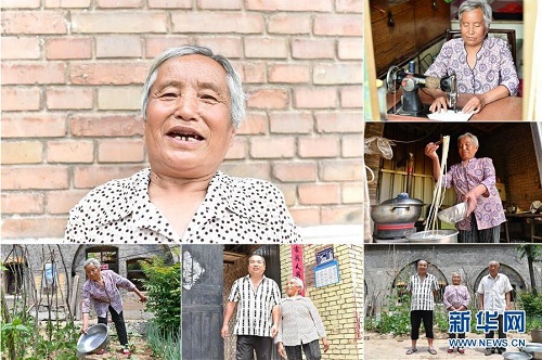 鄭引蘭,女,1949年出生,山西省長治市潞城區(qū)西靳村人,2015年因家人患病而被納入建檔立卡貧困戶?,F在,多項扶貧政策讓全家人的生活有了明顯改善,當地政府幫助危房改造的窯洞也即將完工。 左上:鄭引蘭肖像;右上:鄭引蘭在使用縫紉機;右中:鄭引蘭在廚房盛飯;右下:鄭引蘭(中)一家人合影;下中:鄭引蘭和兒子走出家門;下左:鄭引蘭在院子里給植物澆水(拼版照片,6月12日攝)。 地處晉東南的山西省長治市,位于由太行山、太岳山環(huán)繞而成的上黨盆地中。在群山中、崖壁上,許多村莊自然條件惡劣,基礎設施落后,脫貧致富是大山深處人們的迫切心愿。 近年來,一場場脫貧攻堅戰(zhàn),在一個個深山村打響。政府全力探索脫貧路徑的同時,山區(qū)百姓因地制宜,靠自己的雙手和智慧走上致富路,交出了一份扎實的脫貧答卷。 記者在太行山、太岳山一路尋訪,記錄下多位70歲老人的生活。這些共和國的同齡人,親歷了山鄉(xiāng)的巨變,見證著長治山區(qū)脫貧攻堅偉大工程的一步步推進。 新華社記者 曹陽 攝