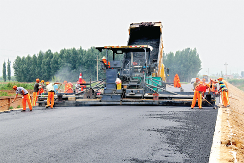 圖為勝利路南延工程鋪設(shè)最后一遍瀝青。(趙曉煒 智芝龍 攝)