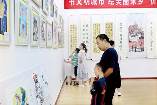 市教育局、市關(guān)心下一代工作委員會(huì)、五臺(tái)山書畫院、五臺(tái)山文化研究院、市書法家協(xié)會(huì)、市美術(shù)家協(xié)會(huì)、市硬筆書法協(xié)會(huì)、市廣播電影電視協(xié)會(huì)、黃河新聞網(wǎng)等主辦單位負(fù)責(zé)人,以及我市書畫家、學(xué)校、書畫培訓(xùn)機(jī)構(gòu)代表、參賽學(xué)生代表以及聞?dòng)嵱^展的市民200余人參加了活動(dòng)。300余幅充滿童趣、技法嫻熟,從不同側(cè)面抒發(fā)對(duì)祖國和家鄉(xiāng)美麗風(fēng)景的贊美,歌頌秀容大地日新月異變化的書畫作品驚艷了到場的所有人。