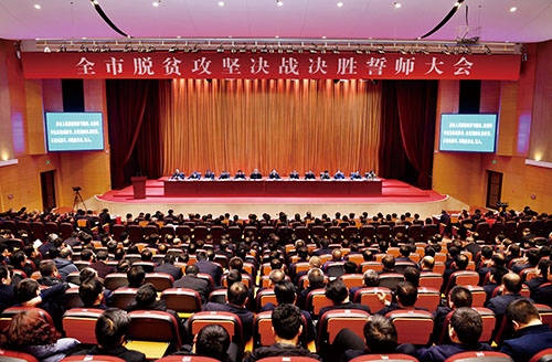 圖為全市脫貧攻堅決戰(zhàn)決勝誓師大會會場。本報記者 劉紀(jì)森 攝