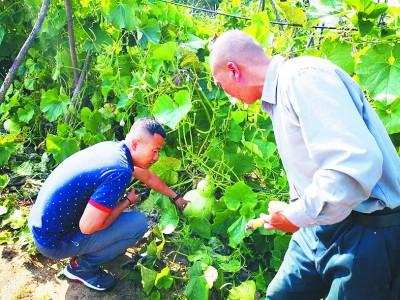 山西省總工會派駐宋家溝村第一書記楊濤(左)幫助村民引進葫蘆種植,以豐富旅游產品。光明日報記者 李建斌攝
