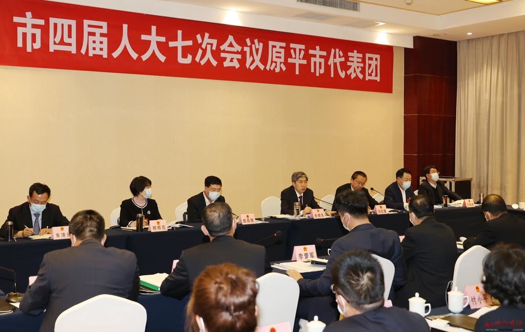 朱曉東在市四屆人大七次會(huì)議原平市代表團(tuán),同代表們一起審議政府工作報(bào)告。張存良 攝