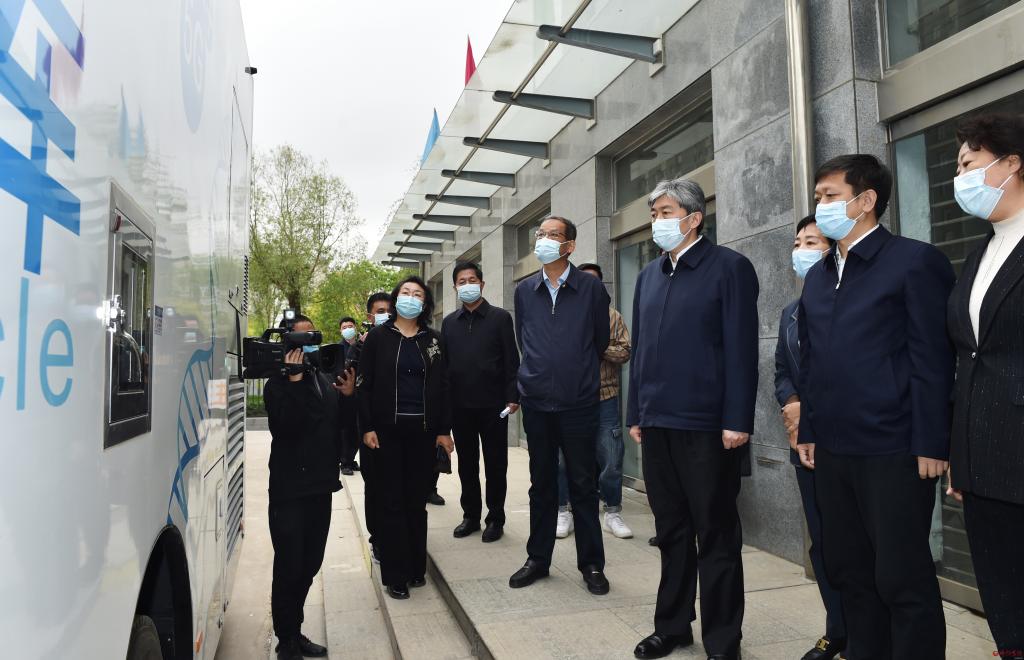 在市疾控中心察看移動P2+核酸檢測車的使用情況。馮曉磊 攝
