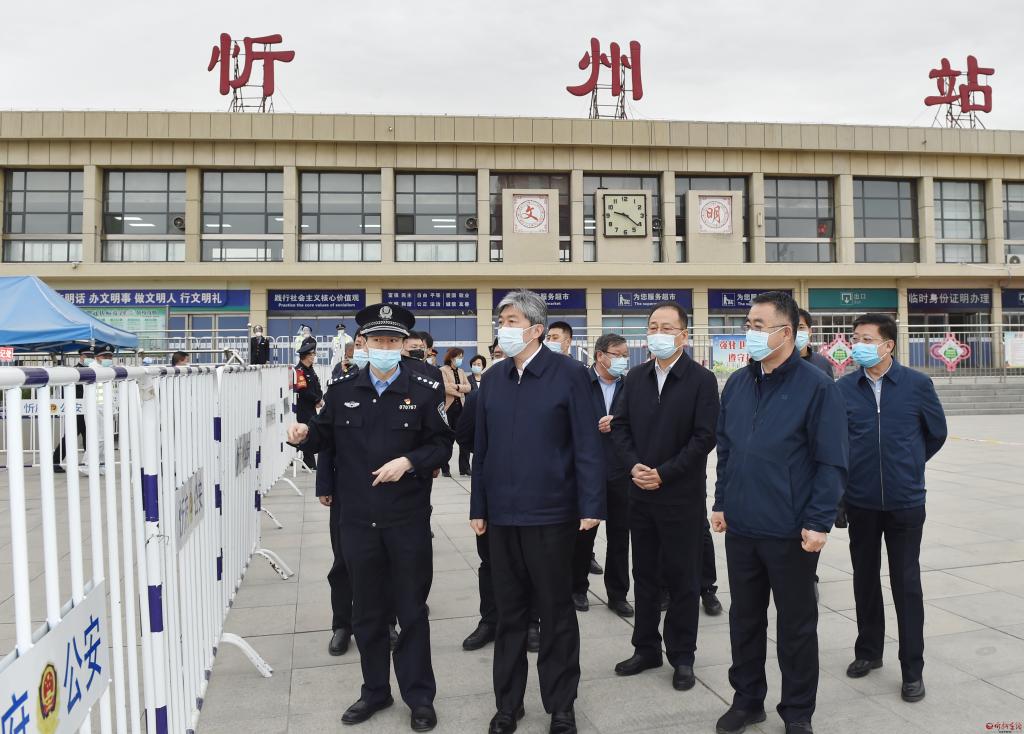 在忻州火車站調(diào)研來忻返忻人員“點對點”接返和隔離管控等工作落實情況。馮曉磊 攝