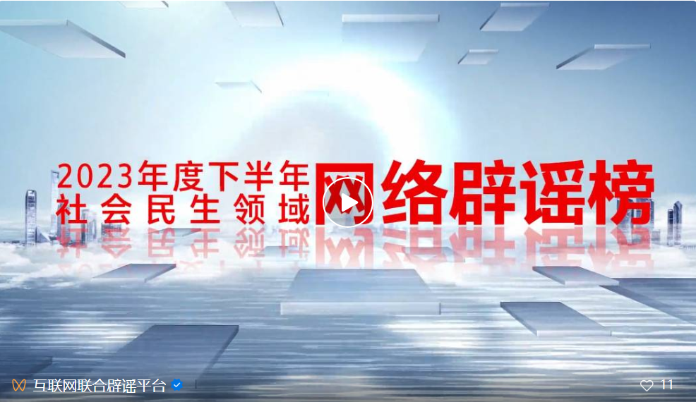 為抵制網(wǎng)絡謠言,清朗網(wǎng)絡空間,維護網(wǎng)民權(quán)益,中央網(wǎng)信辦舉報中心聯(lián)合中國科協(xié)科普部在組織專家評審基礎上,針對食品安全、應急安全、生態(tài)環(huán)境、公共政策等群眾關切的社會民生領域謠言和誤區(qū),共同發(fā)布《2023年度下半年社會民生領域網(wǎng)絡辟謠榜》。
