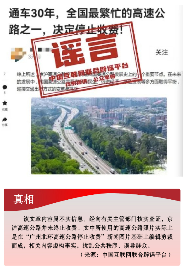 京滬高速公路停止收費(fèi)?