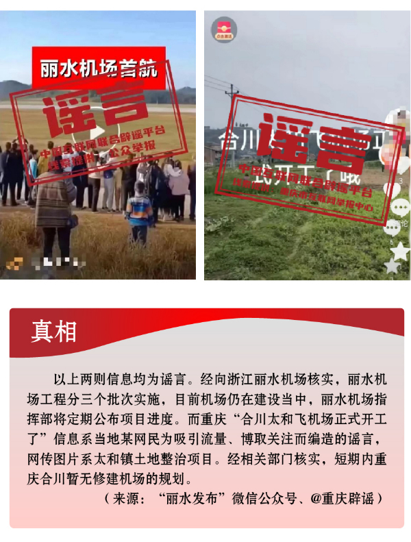 搭蹭熱點(diǎn)散播民生類謠言,渲染焦慮。3月,全國兩會(huì)召開,“民生清單”熱度高?!按赫小薄按河巍钡葧r(shí)間節(jié)點(diǎn),有關(guān)招工就業(yè)、疫病傳染等內(nèi)容也成為個(gè)別網(wǎng)民博眼球的素材。一些個(gè)人或自媒體歪曲甚或虛構(gòu)事實(shí),編造散布社會(huì)民生謠言,引發(fā)公眾不必要的焦慮。如,別有用心者惡意虛構(gòu)事實(shí),發(fā)布“重慶80%的工廠暫停招聘”“湖南郴州疫情卷土重來”等虛假信息,渲染負(fù)面情緒、徒增公眾憂慮、擾亂社會(huì)秩序;還有人為吸引流量、博取關(guān)注,根據(jù)主觀臆想,采取移花接木等手段,散播“京滬高速公路停止收費(fèi)”“浙江麗水機(jī)場(chǎng)已建成投用并首航”“重慶合川太和飛機(jī)場(chǎng)正式開建”等涉重大基礎(chǔ)設(shè)施建設(shè)項(xiàng)目的假消息,誤導(dǎo)公眾認(rèn)知,擾亂群眾交通出行秩序。