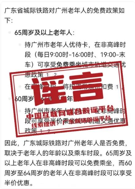 謠 言 持廣州市老年人優(yōu)待卡可免費(fèi)乘坐城際列車(chē)?