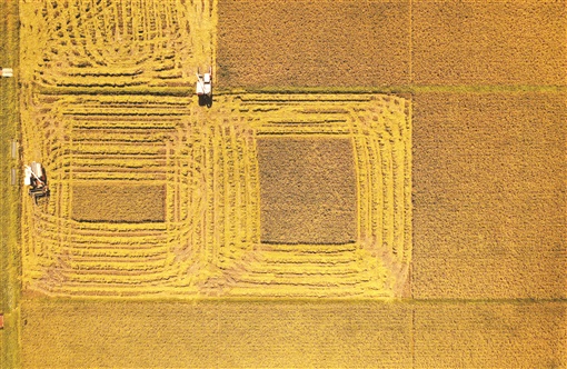 5月9日上午,湖南雜交水稻研究中心海南省三亞市海棠灣基地,收割機(jī)對(duì)水稻試驗(yàn)示范田進(jìn)行收割。湖南日?qǐng)?bào)·新湖南客戶(hù)端首席記者 郭立亮 攝
