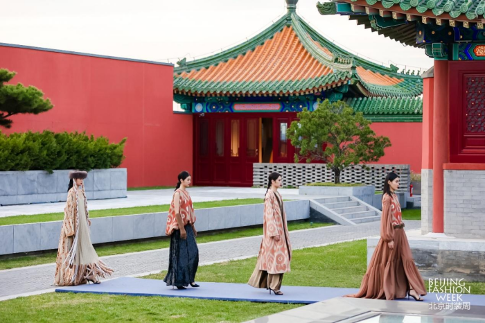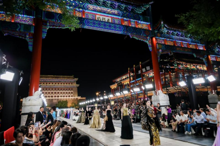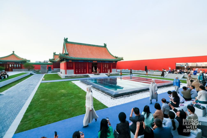 城市即秀場,穿越古今的時(shí)尚力量 文化寄存于城市之間,時(shí)尚產(chǎn)業(yè)與文化相伴相生。北京獨(dú)特的文化氛圍讓時(shí)尚產(chǎn)業(yè)扎根于肥沃的傳媒土壤,在城市中間探尋時(shí)尚的秀場,尋求時(shí)尚貫穿于中國人的生活之間方方面面的具象體現(xiàn)。城市獨(dú)有的文化氛圍讓時(shí)尚發(fā)布有了新的錨點(diǎn),融身于市井阡陌的模特們,于文化之都鑄造時(shí)尚之魂,煥發(fā)時(shí)尚生機(jī)。 本屆北京時(shí)裝周圍繞“IN 北京 潮有范兒”的全新主題,打破封閉的空間藩籬,涵蓋潮流發(fā)布、主題論壇、專業(yè)賽事、時(shí)尚展覽多項(xiàng)活動(dòng),于王府井、前門大街、望京小街等地標(biāo)構(gòu)建“以城為景”的生態(tài)秀場。此次時(shí)裝周于前門大街以“點(diǎn)亮中軸線”大秀開幕,歷經(jīng)8天數(shù)十場活動(dòng),最后在王府井大街以“與美相織”大秀落下帷幕。 特別是在東城區(qū)新文化地標(biāo)——隆福文化中心舉辦的艾德萊斯時(shí)尚大秀和“地球第三極”西藏毛紡織品牌大秀都各具特色?;诿褡寮y飾設(shè)計(jì)的兩場大秀,在新國潮的聚集地隆福寺展開,以古樸的紅墻青磚為映襯。我國多位設(shè)計(jì)師為觀眾呈現(xiàn)了穿越千年的時(shí)空對話,讓傳統(tǒng)的非遺文化、民族時(shí)尚和古建筑地標(biāo)相得益彰,無不彰顯著中國時(shí)尚的文化自信。