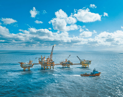 圖為渤中19—6氣田Ⅰ期開(kāi)發(fā)項(xiàng)目。費(fèi)振宇攝(人民視覺(jué))