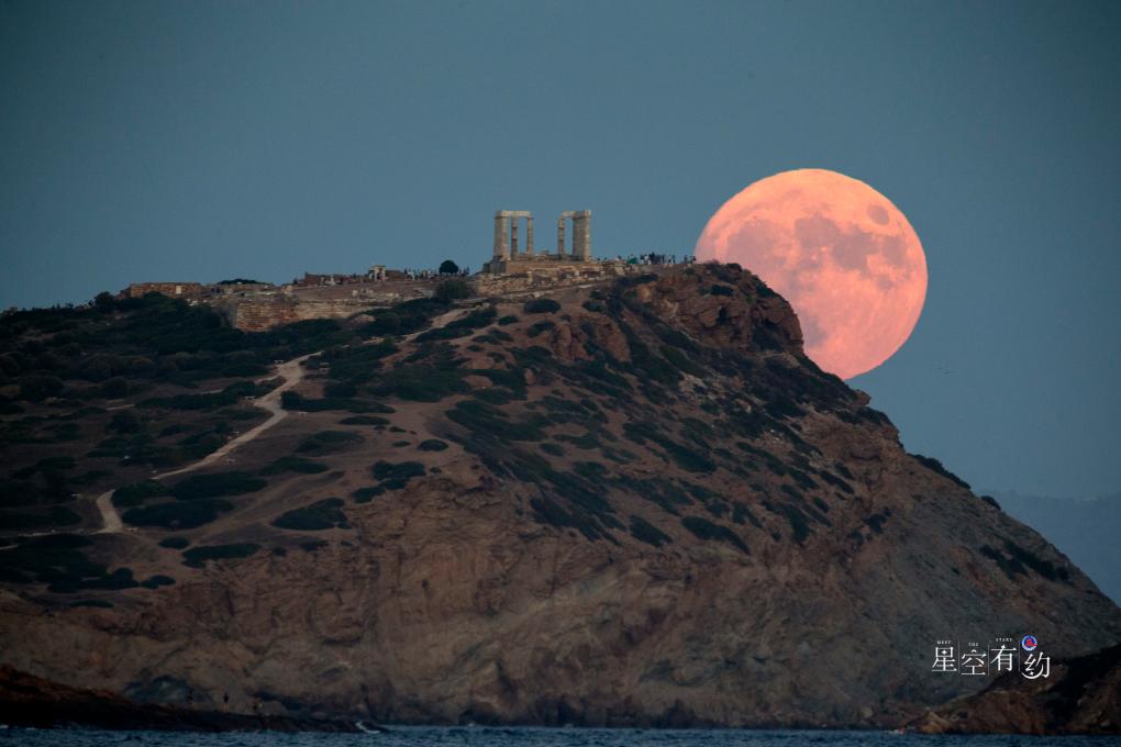 2023年8月30日,“超級月亮”從希臘蘇尼翁角的波塞冬廟上空升起。新華社發(fā)(馬里奧斯·羅洛斯攝) 當(dāng)月球和太陽處于地球兩側(cè),并且月球和太陽的黃經(jīng)相差180度時,地球上看到的月球最圓,被稱為“滿月”,亦稱為“望”。農(nóng)歷每月的十四、十五、十六甚至十七,都是滿月可能出現(xiàn)的時段。
