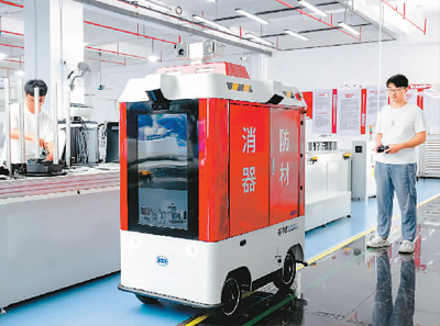 福建省福州市倉山區(qū)大力發(fā)展以智能制造為主導的新一代信息技術產業(yè),通過人才引進、科技創(chuàng)新、強化金融服務和落實財稅等惠企政策,積極打造數字經濟核心產業(yè)集聚區(qū)。圖為技術人員在福建漢特云智能科技有限公司生產線上調試消防智能巡邏機器人。新華社記者 魏培全攝
