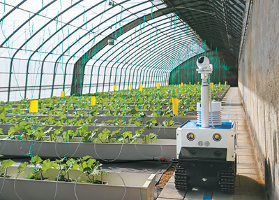 3月21日,無人巡檢機(jī)器人在天津一家智慧農(nóng)業(yè)園區(qū)內(nèi)巡控。新華社記者 孫凡越攝