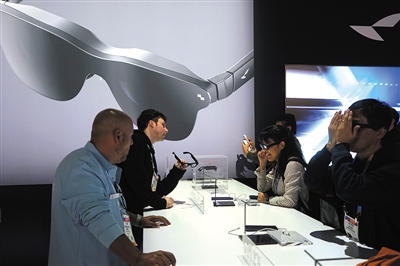 圖為2026美國拉斯維加斯消費(fèi)電子展上,參觀者在體驗(yàn)智能眼鏡。 新華社發(fā)(曾慧攝)