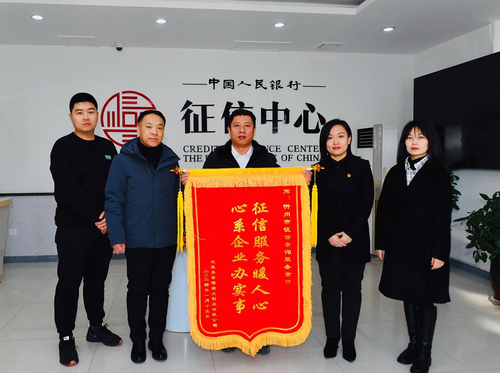 1月15日上午,定襄縣晉博鍛壓制品有限公司負(fù)責(zé)人將一面寫有“征信服務(wù)暖人心,心系企業(yè)辦實事”的錦旗送到了人民銀行忻州市分行征信查詢服務(wù)窗口,感謝為其高效處理征信異議,幫助企業(yè)解決資金往來受阻困境。