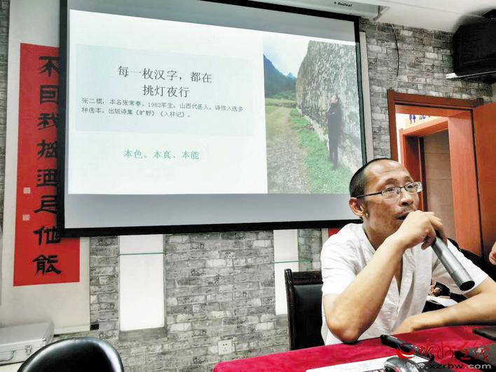 本報(bào)訊 8月15日晚,位于忻州市七一北路的好目匠眼鏡店迎來一場(chǎng)文學(xué)盛會(huì)。保德縣、岢嵐縣、五寨縣、原平市、定襄縣的詩歌愛好者,與忻州城區(qū)的詩歌愛好者一起聆聽了著名詩人張二棍關(guān)于詩歌創(chuàng)作的講座,甚至有詩歌愛好者專門從北京趕回忻州。當(dāng)晚,連講座廳外都站滿了聆聽的人。