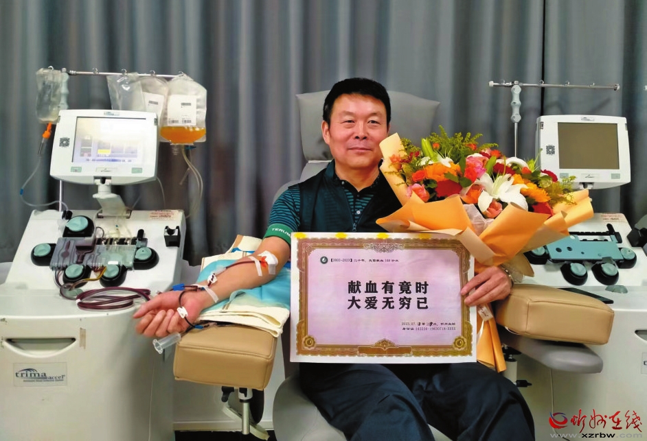 獻(xiàn)血有量,大愛無(wú)疆。梁占海表示,獻(xiàn)血雖然結(jié)束了,但自己將從此轉(zhuǎn)向無(wú)償獻(xiàn)血志愿服務(wù)隊(duì)伍,終身服務(wù)于無(wú)償獻(xiàn)血這一公益事業(yè)。(本報(bào)記者 王金華)