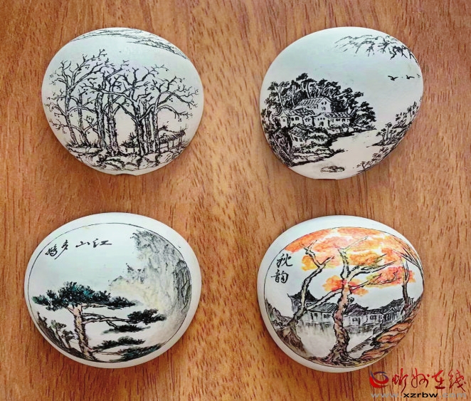 他的幾番“折騰”、數(shù)度“顯擺”、執(zhí)著傳承“非遺”的情結(jié),被制作成電視短片,被寫(xiě)成技藝故事,一時(shí)間街坊鄰里都知道小區(qū)里有一位和蛋殼有感情的“老頑童”,故鄉(xiāng)的新朋舊友及過(guò)去的同事,也紛紛為他“蛋殼上作畫(huà)”的行為點(diǎn)贊。