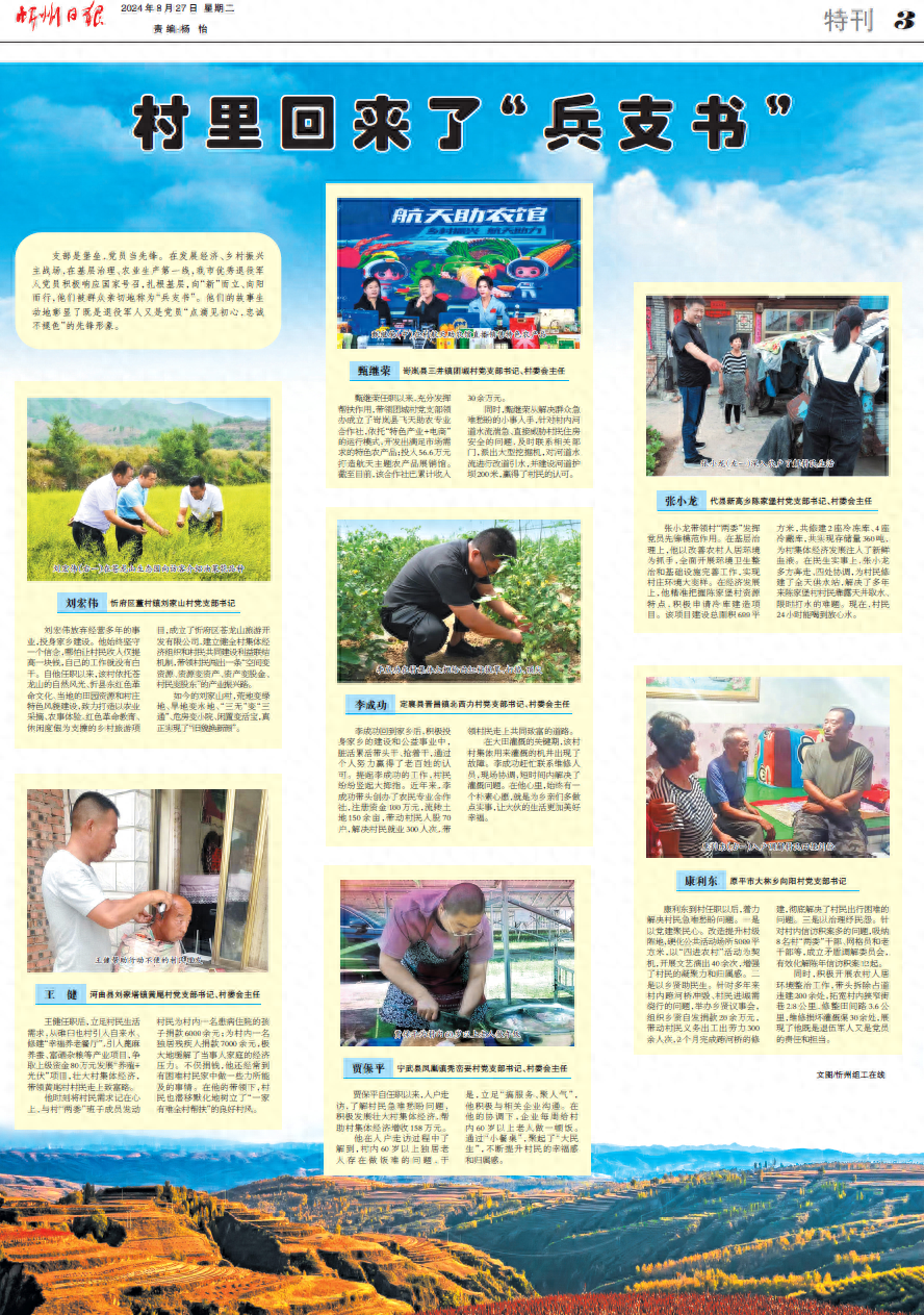 支部是堡壘,黨員當(dāng)先鋒。在發(fā)展經(jīng)濟(jì)、鄉(xiāng)村振興主戰(zhàn)場(chǎng),在基層治理、農(nóng)業(yè)生產(chǎn)第一線,我市優(yōu)秀退役軍人黨員積極響應(yīng)國(guó)家號(hào)召,扎根基層,向“新”而立、向陽而行,他們被群眾親切地稱為“兵支書”。他們的故事生動(dòng)地彰顯了既是退役軍人又是黨員“點(diǎn)滴見初心,忠誠(chéng)不褪色”的先鋒形象。