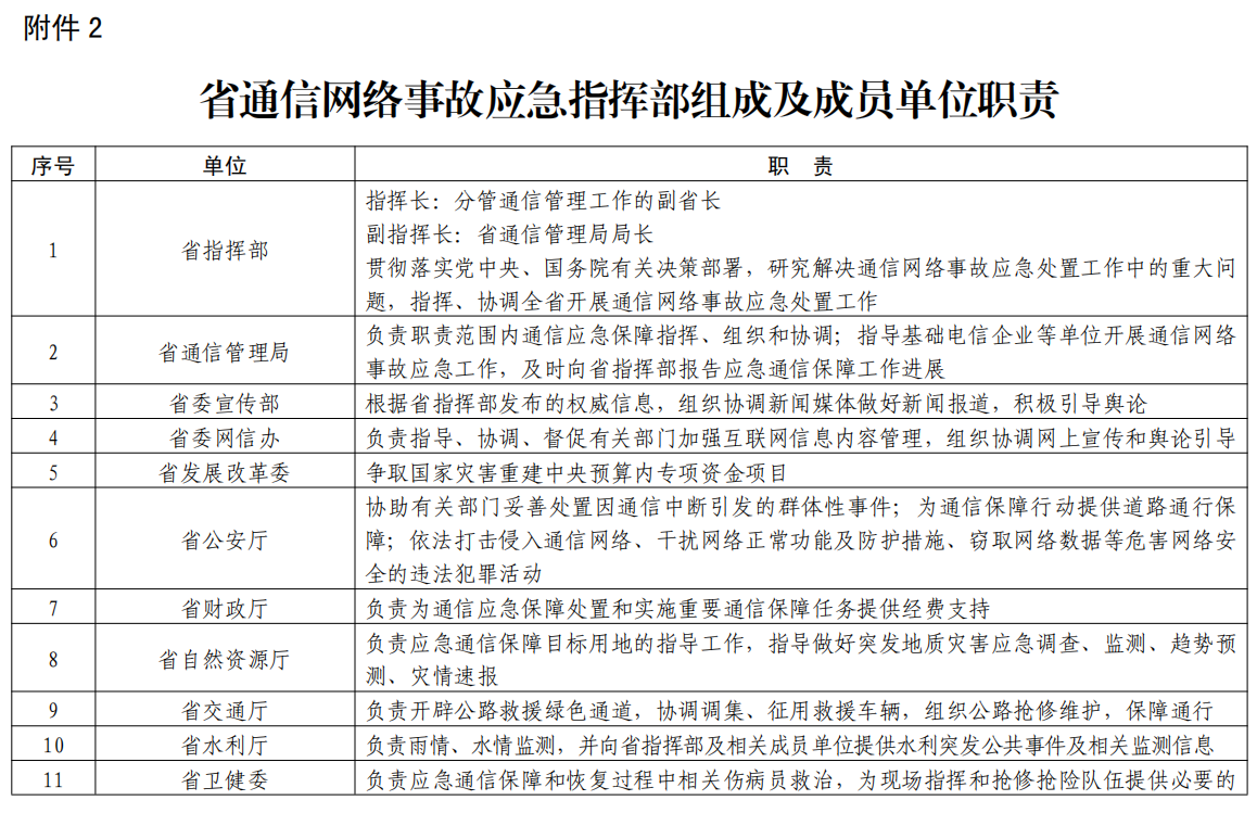 2.省通信網(wǎng)絡事故應急指揮部成員單位職責