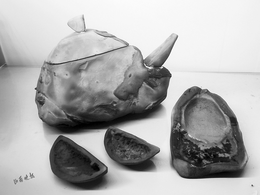 日前,在陽泉市古生物化石保護協(xié)會的會員線下交流活動中,71歲的奇石愛好者任富材將家中收藏的大量觀賞石標本展示出來。他收藏陽泉觀賞石及化石已有50余年,他的收藏包含各種地質(zhì)巖石標本:靈璧石、木魚石、煤核石、木化石、海螺化石、方解石、瑪瑙石、鈣質(zhì)結(jié)核等,琳瑯滿目。在這些藏品中,一種褐鐵礦結(jié)核——木魚石,頗為引人注目,這些石頭被任富材制作成了硯臺、茶壺、石函、擺件等精美工藝品。任富材說,在《山西中藥典》一書中記載的禹余糧,其實就是木魚石,別名又叫“太一余糧”“石中黃子”,俗稱“還魂石”“鳳凰蛋”,有著吉祥如意的寓意,被民間爭搶收藏。眾多礦石愛好者對任富材的這些木魚石藏品產(chǎn)生了濃厚的興趣,也對陽泉本地木魚石的儲量、特性、成分等打起了問號。
