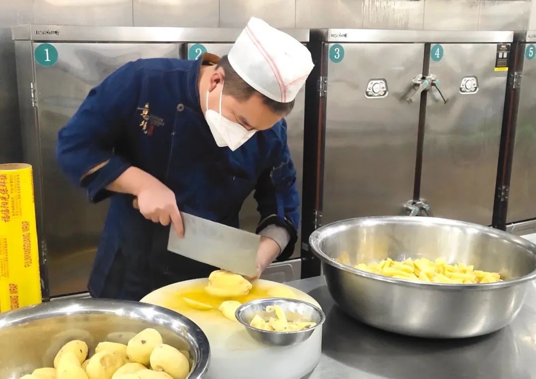 市級方艙醫(yī)院啟用以來,作為抗疫主力軍的護航者,后勤是這場疫情保衛(wèi)戰(zhàn)的關(guān)鍵一環(huán)。為做好方艙醫(yī)院運行后的餐飲、生活用品及工作人員的住宿等后勤保障服務(wù)工作,忻州市級方艙醫(yī)院后勤保障工作組夜以繼日,辛苦奉獻,始終和醫(yī)療團隊從黑夜到黎明奮戰(zhàn)在一線。18日中午12點,記者來到忻州市方艙醫(yī)院大門口看到,方艙內(nèi)外保障組工作人員正在交接餐食,一包包盒飯、水果從餐車拿出來放到三輪車上,然后由艙內(nèi)后勤保障組工作人員送到方艙內(nèi)醫(yī)護人員的手中。