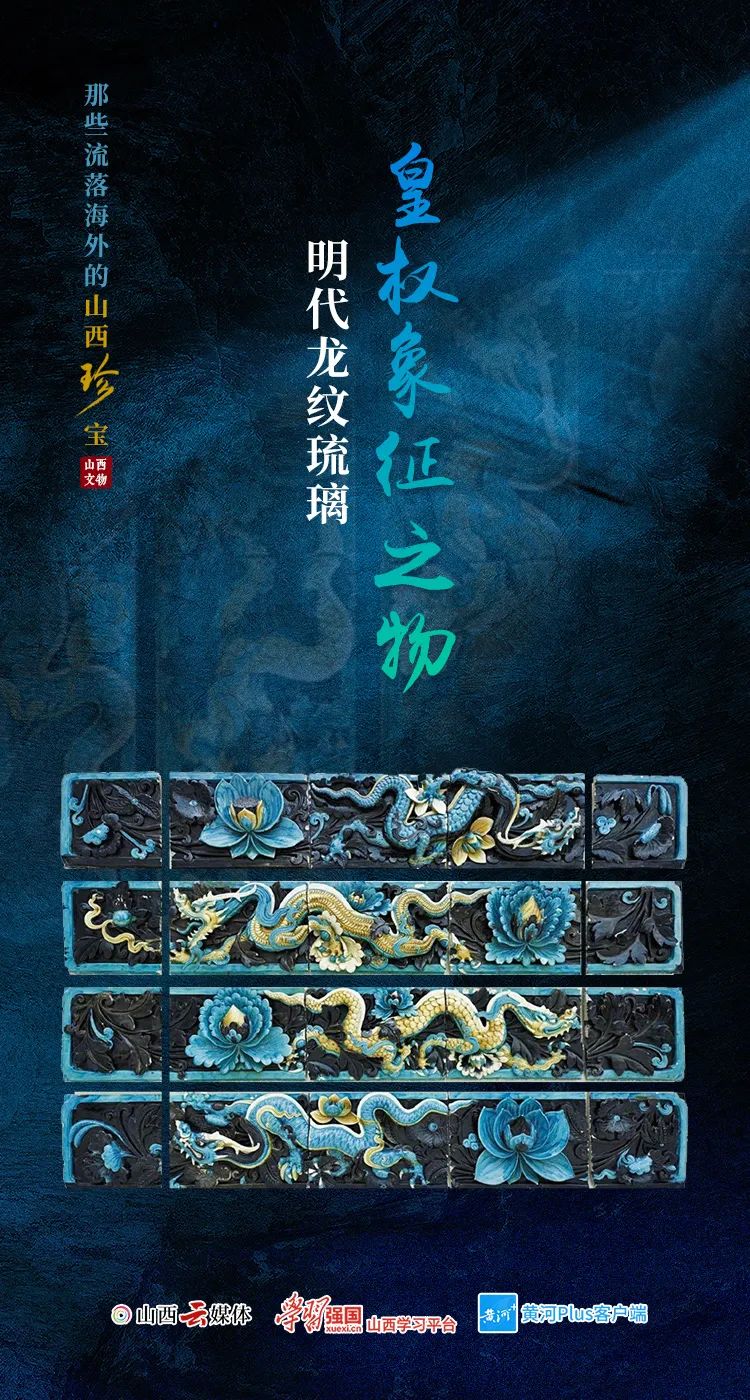 龍是中國(guó)古代吉祥如意和皇權(quán)的象征。山西在明代時(shí)期對(duì)琉璃技術(shù)的制作非常成熟,各種圖案的裝飾琉璃部件十分普遍。這一組二十塊的釉面瓷磚,打造于15至16世紀(jì)的山西,最初應(yīng)該來(lái)自兩個(gè)不同的寺廟建筑。