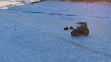 拖拉機(jī)拉著雪圈起舞旋轉(zhuǎn)