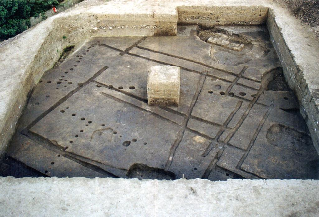 1980年11月,四川省文管會、四川省博物館與廣漢縣文化館組成聯(lián)合發(fā)掘隊,在三星堆地點東側(cè)進行發(fā)掘,發(fā)掘面積1100平方米,于次年5月結(jié)束工作,發(fā)現(xiàn)房址共有18座。這些房址平面形狀有方形、長方形和圓形。通過對柱洞和溝槽推算,房屋面積一般在10-25平方米之間,多在一側(cè)開門,門的朝向不一,少數(shù)房內(nèi)有隔墻(如F2)。居住面建在生土層上,較堅實,可能經(jīng)過踩踏或拍打,少數(shù)居住面上加了一層白膏泥。