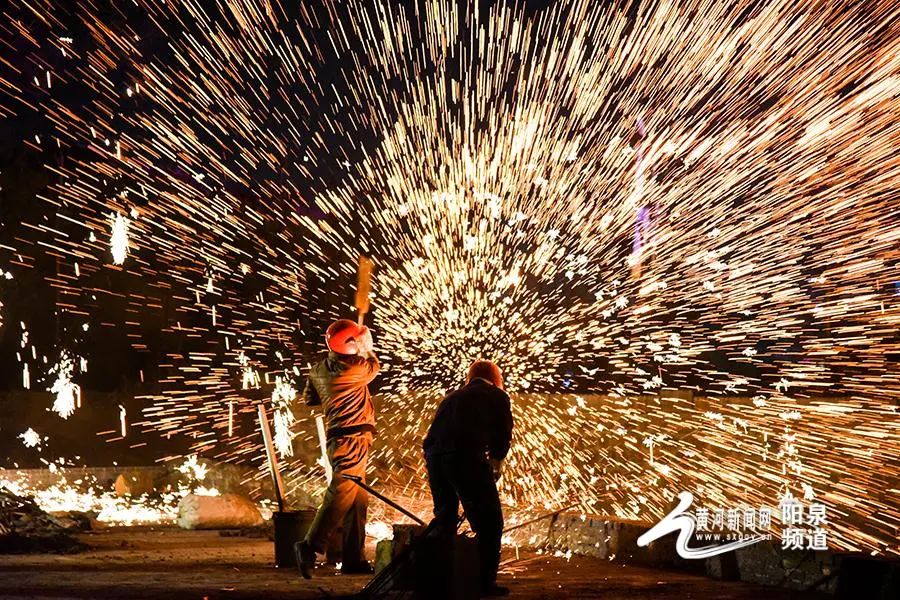 圖為陽泉市郊區(qū)蔭營古鎮(zhèn)“打鐵花”表演現(xiàn)場(chǎng)。郭衛(wèi)衛(wèi)、赫慧敏 攝“咚咚鏘,咚咚鏘,咚鏘咚鏘咚咚鏘……”伴隨著鏗鏘有力的鑼鼓聲,呂梁市2024年元宵節(jié)街頭文藝展演活動(dòng)拉開序幕,演員們腰系紅綢、手舞彩扇、載歌載舞,個(gè)個(gè)精神抖擻、喜氣洋洋,秀出民俗風(fēng)采,舞出時(shí)代風(fēng)貌。耍龍、舞獅、扭秧歌、劃旱船等輪番上演,瞬間將年味兒“拉滿”。