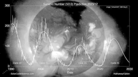 自1755年觀測到第一個太陽活動周期開始,人類現(xiàn)在正經(jīng)歷第25個太陽活動周期的上升階段??梢灶A計,太陽活動將逐漸增加,太陽耀斑和日冕物質拋射發(fā)生的次數(shù)將越來越多。